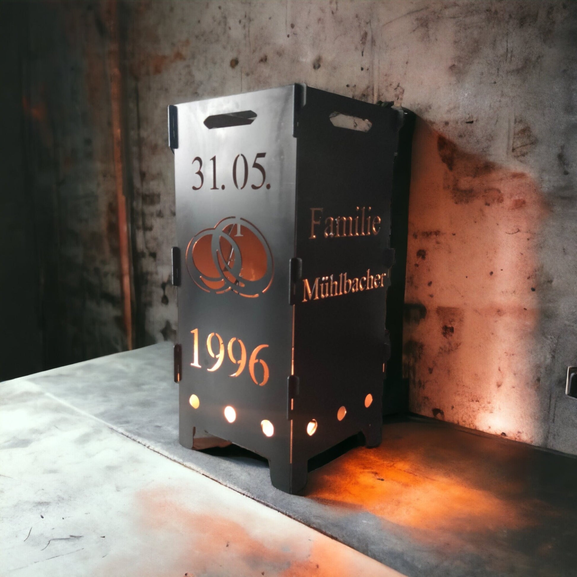 Entdecken Sie unsere hochwertigen Feuertonnen und Feuerkörbe, die Sie ganz nach Ihren Vorstellungen personalisieren können. Ob als stilvolle Gartendeko, romantisches Hochzeitsgeschenk oder besonderes Highlight für gemütliche Abende im Freien – unsere Feuertonnen und Feuerkörbe sind echte Hingucker.