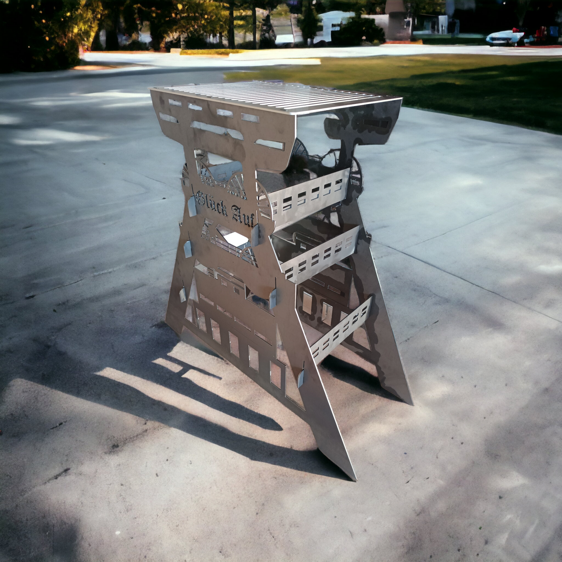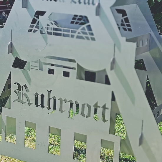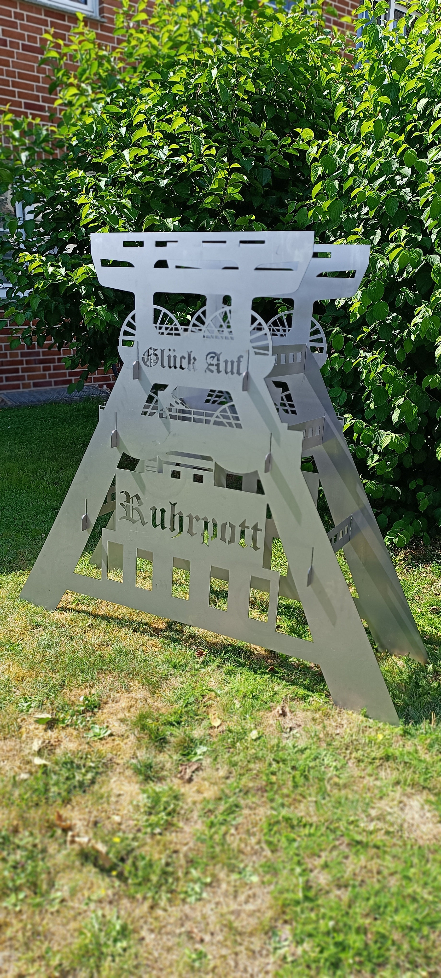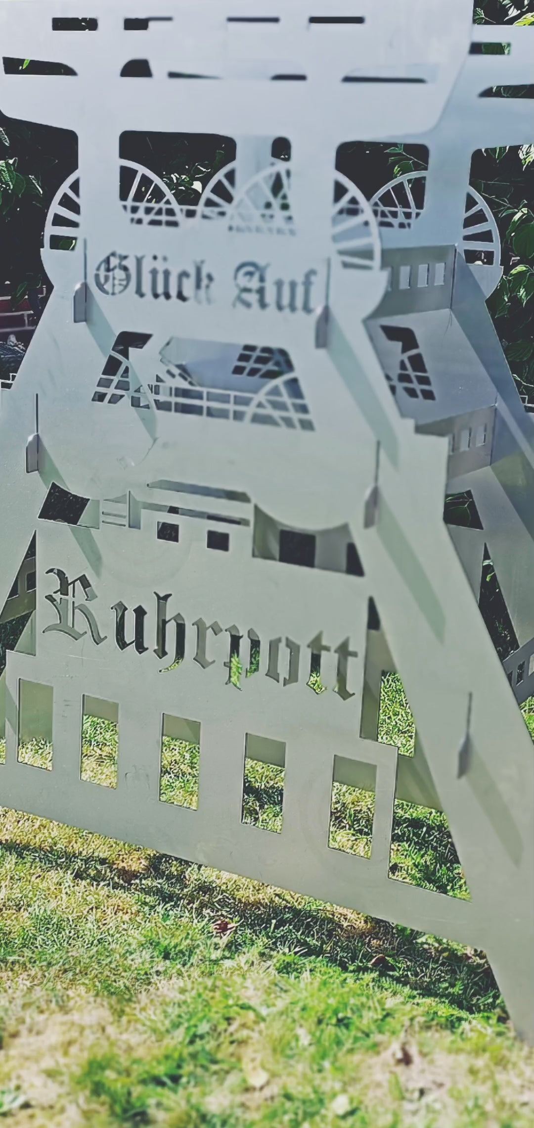 Der Förderturm besteht aus hochwertigem, verzinktem 2 mm Stahl, der für das ganz besondere Ruhrpott-Feeling sorgt. Er ist nicht nur ein ästhetisches Highlight, sondern kann auch mit einem personalisierten Schriftzug oder Logo versehen werden. Ob Firmenlogo, Nachname oder Hausnummer – wir erfüllen gerne Ihre individuellen Wünsche.